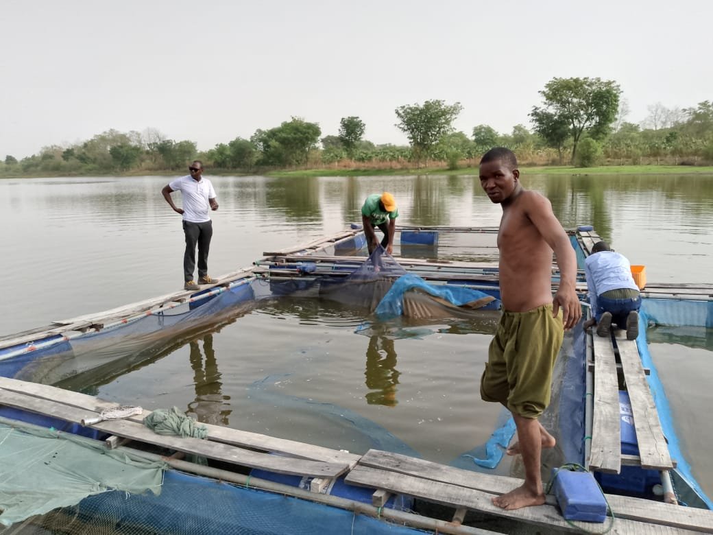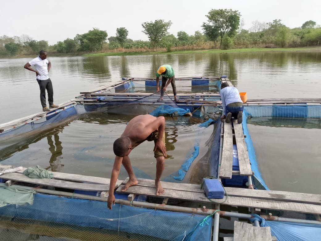 Elevage de poissons en milieu aquatique contrôlé.